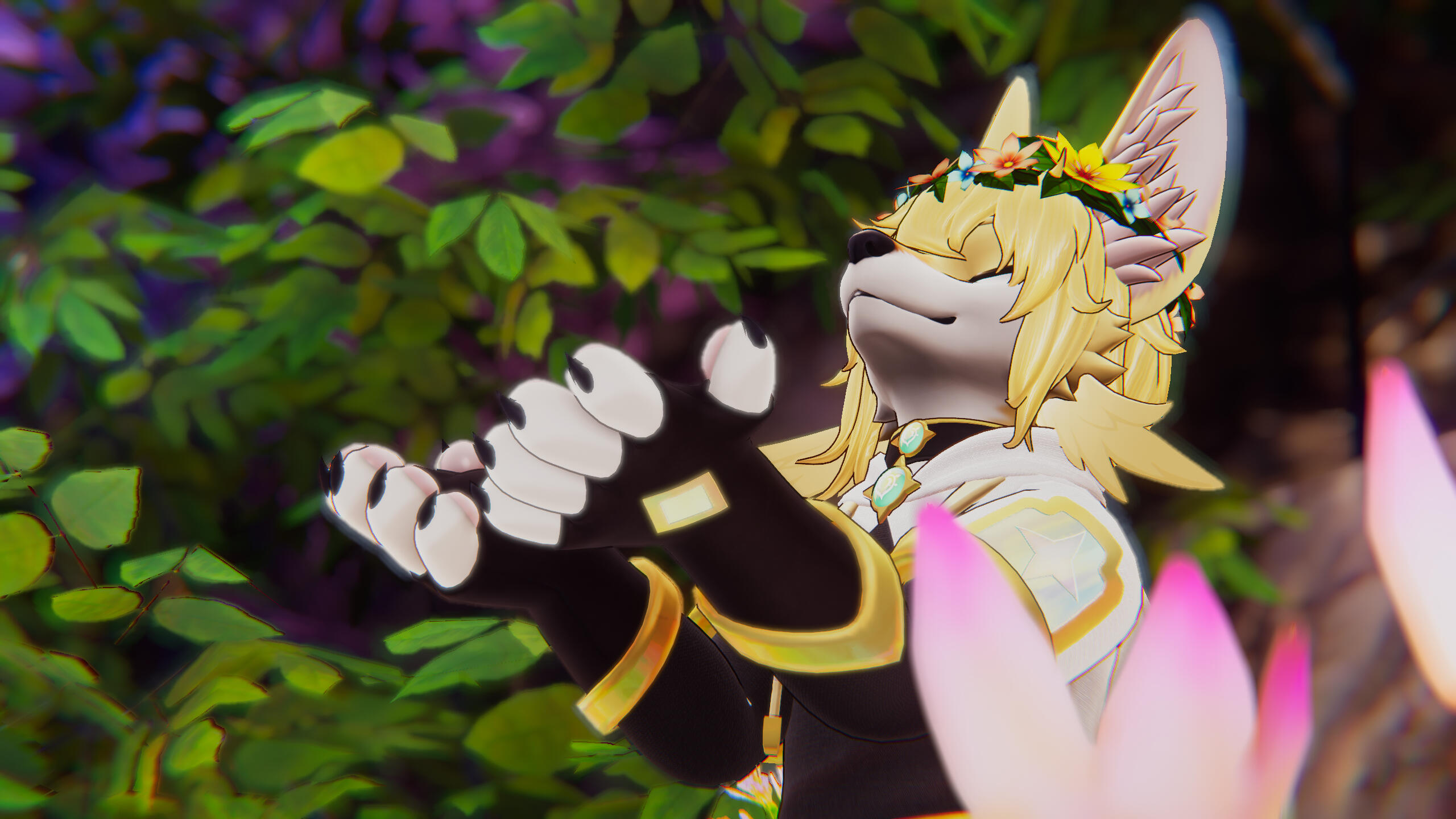 Both of these puppers are Zawoo Canines, with Genshin character model parts edited to fit on them.